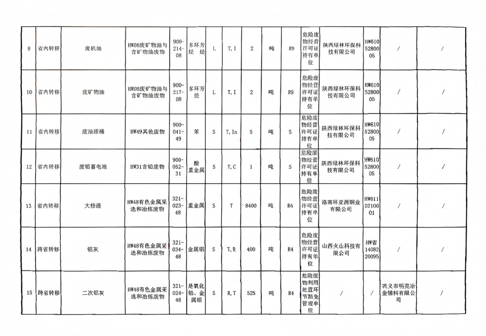 2025年危險(xiǎn)廢物管理計(jì)劃(鋁鎂合金分公司)